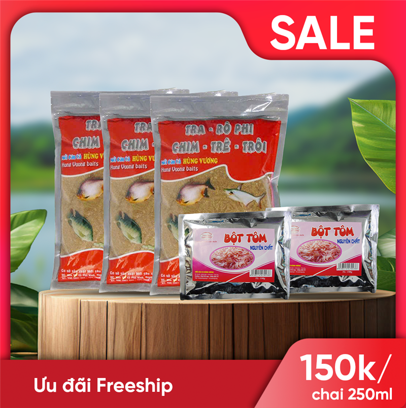 Combo Mồi câu cá Rô Phi gồm 3 gói mồi câu cá rô phi (500g) và 2 gói bột tôm.